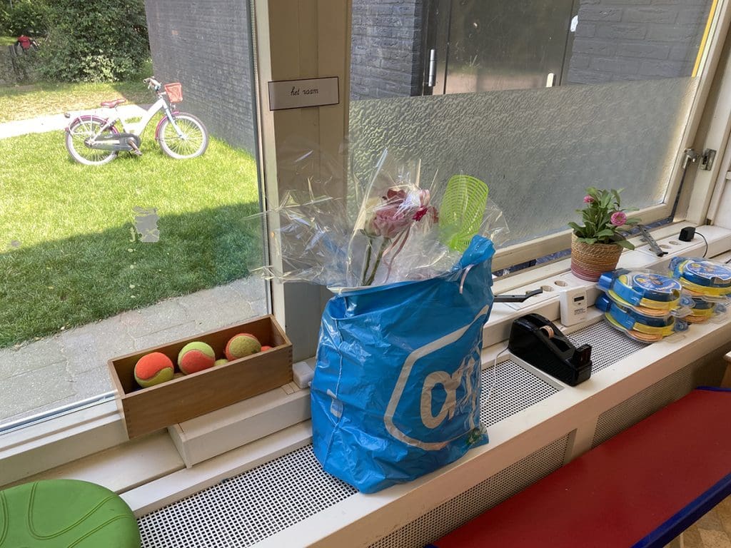 En wenste alle kids een fijne vakantie. Een tas met lieve cadeautjes gaat mee naar huis.