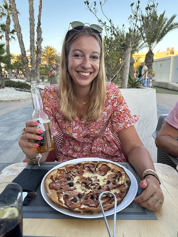 Douchen, omkleden en daarna lekker avondeten. Pizza! Mmmhh.