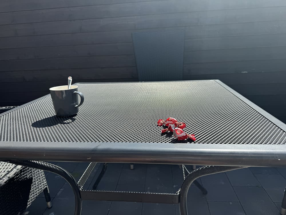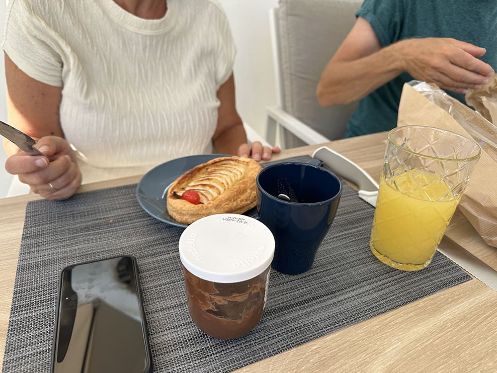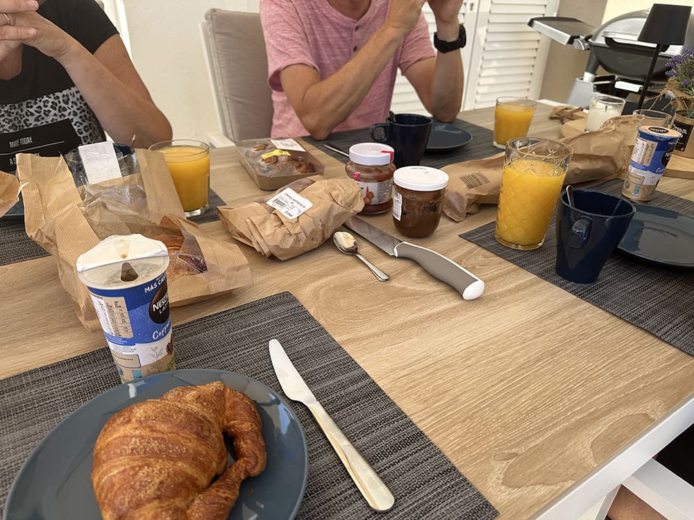 Donderdag (25 juli). Onze laatste ochtend, natuurlijk met een lekker ontbijtje.