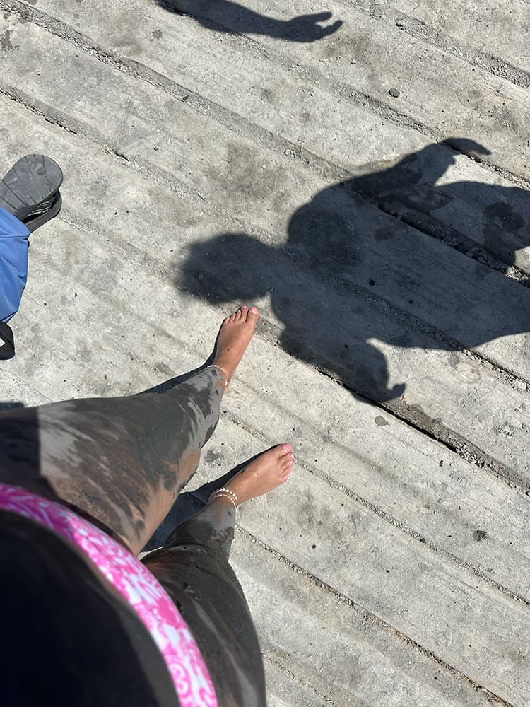 Daarna zijn we naar het strand geweest dichtbij ons. Hier kun je ook een modderbad nemen. Je haalt de modder uit de zee en smeer je ermee in.
