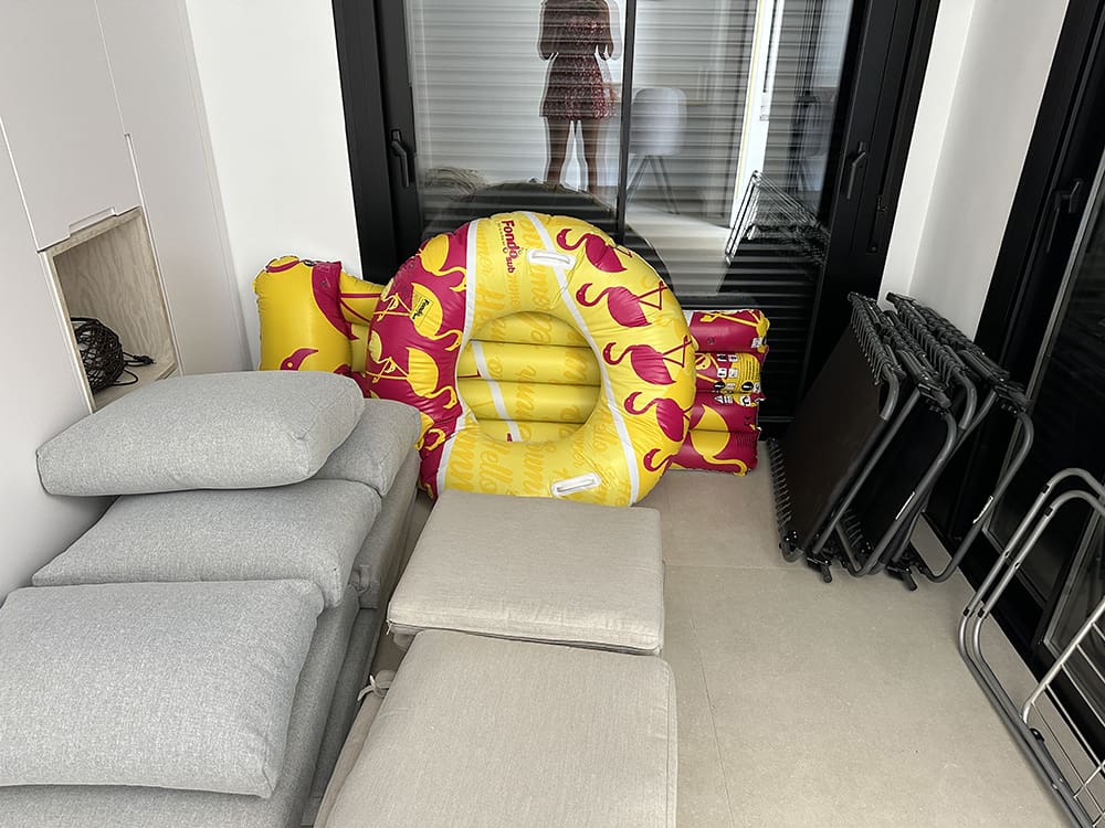 Mijn oom kwam de dag na ons in het appartement. Ik heb het luchtbed en de band voor hem klaar gezet, haha.