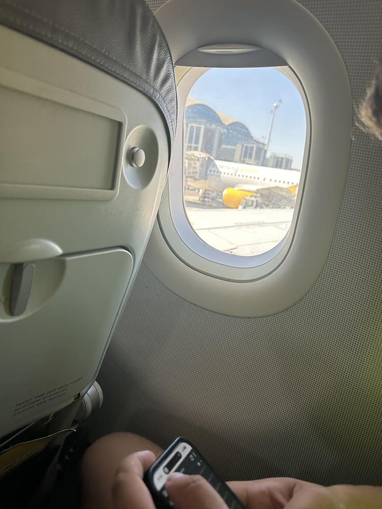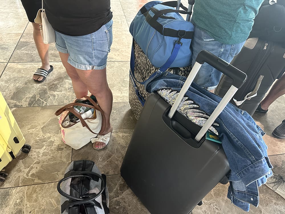 Daar zijn we op de luchthaven van Alicante. We konden inchecken en het duurde even bij de douane. Ik werd eruit gepikt met mijn laptop en weet ik het wat. Het was wat.