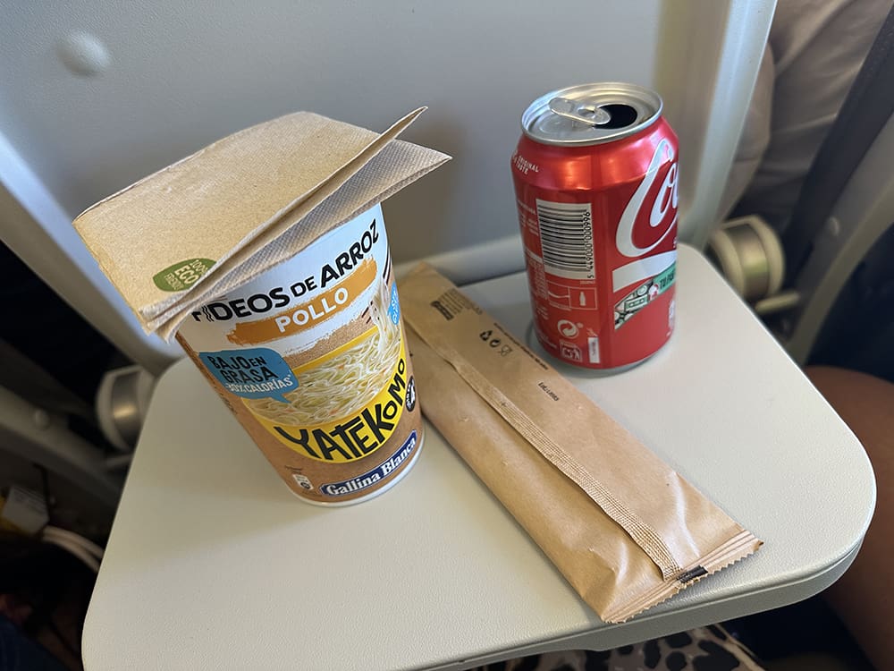 Ik keek een serie en nam wat te eten. Daarna was het alweer tijd om te landen. Het is ook maar een klein stukje vliegen.