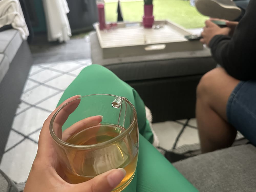 Vrijdag (26 juli). Ik sliep uit en heb gesport. Daarna heb ik koffie gedronken en wat dingen opgeruimd.