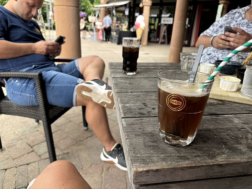 We reden daarna naar Landal Stroombroek. Even gezellig langs bij de standhouders die er stonden en Hugo was er ook. Hij zat lekker op het terras met zijn gezin. We schoven gezellig aan.