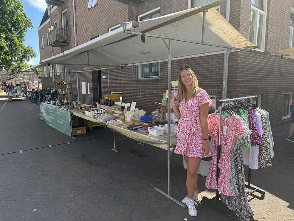Het zonnetje erbij, heerlijk. We hebben in het begin al gelijk lekker verkocht.