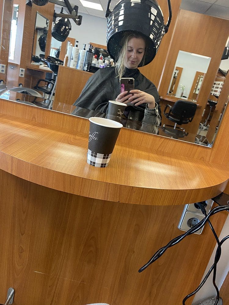 Dinsdag (12 april). Na een ochtend werken op school ging ik door naar de kapper.