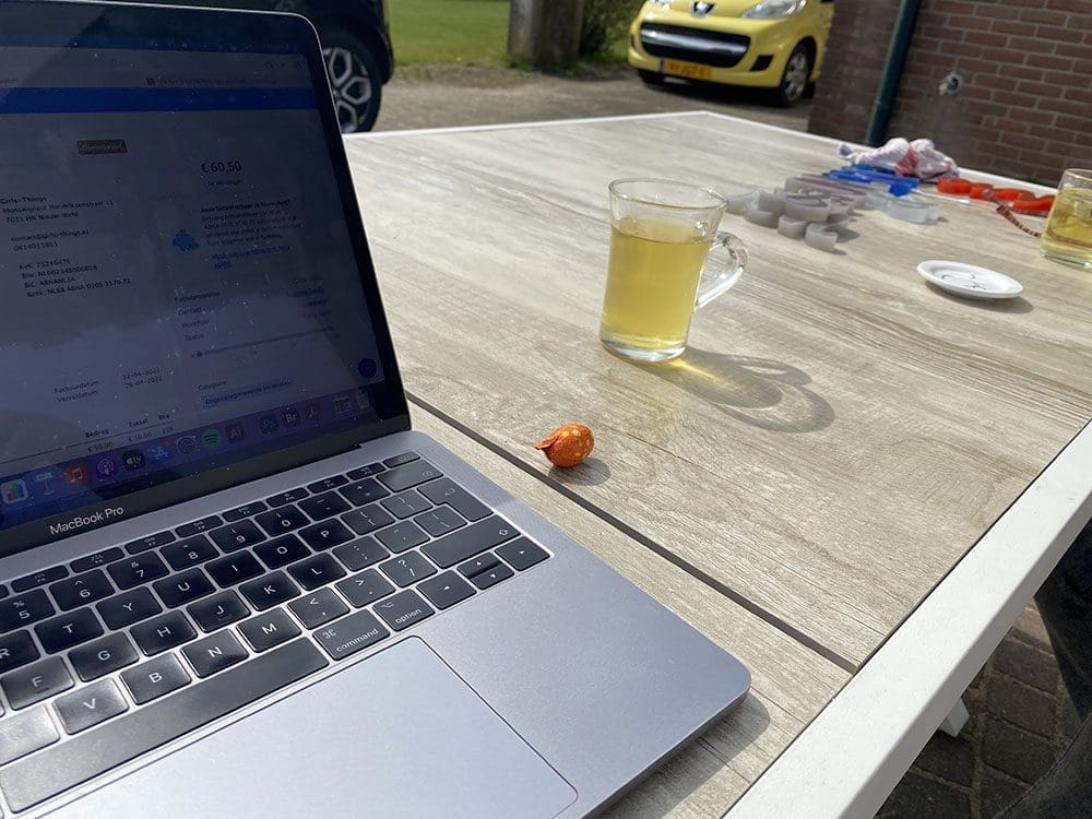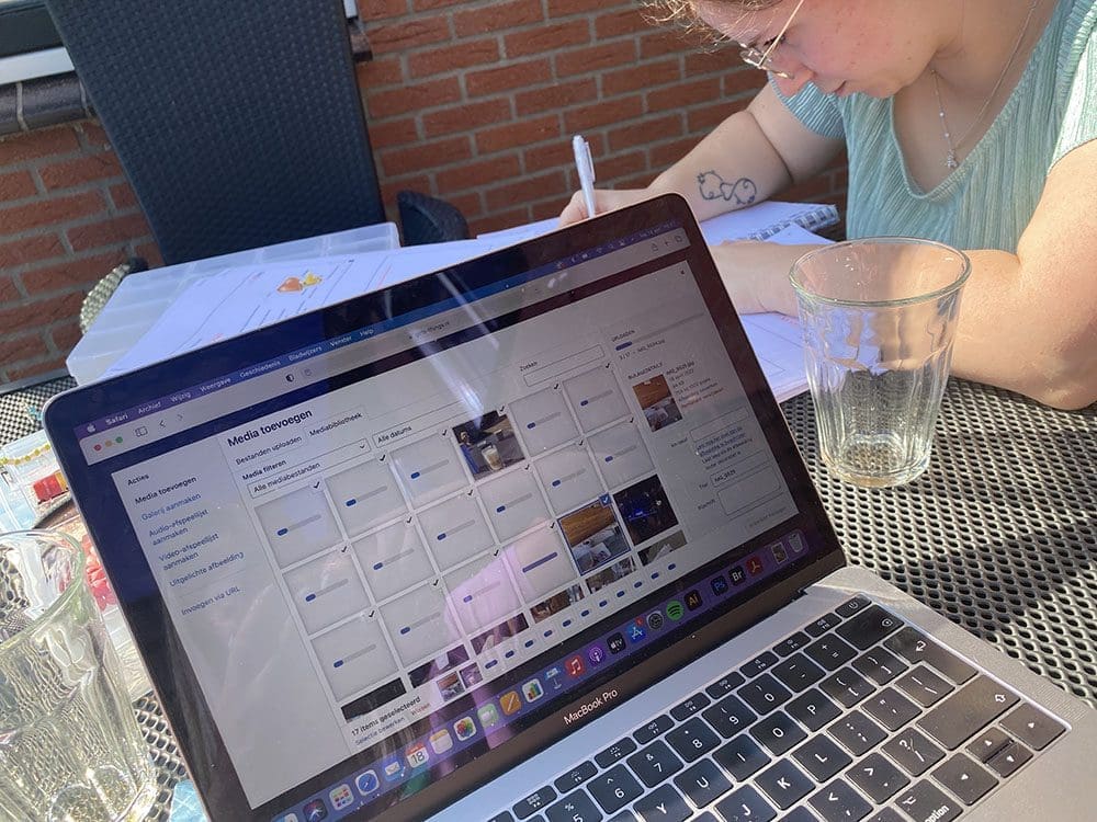Buiten in de zon bloggen en Rianne ging nog wat leren.