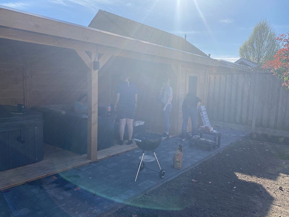 Daarna zijn we met z’n allen nog naar mijn ouders gegaan. Lekker wat drinken buiten.
