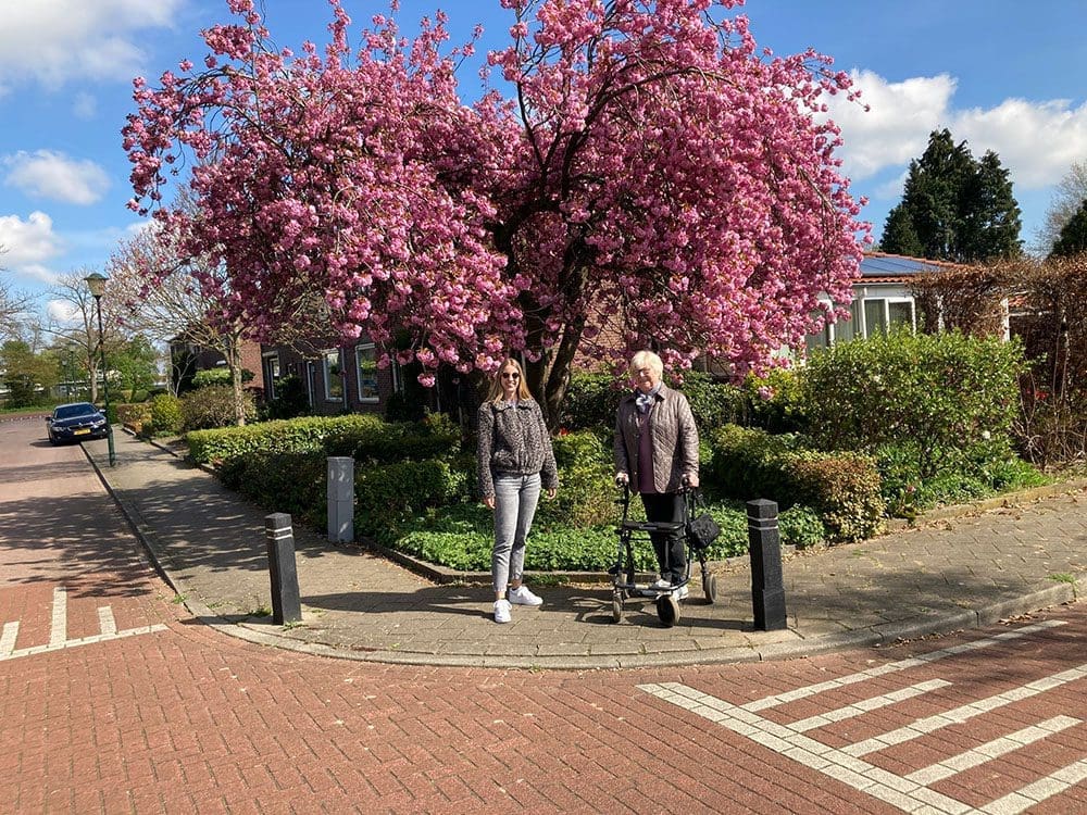 We hebben een stukje met haar gewandeld en haar ‘karretje’ zoals ze haar rollator noemt, haha. Het was heerlijk lopen in het zonnetje.