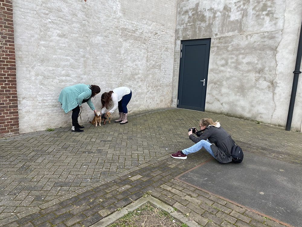 De hondjes gaan ook op de foto. Haha.