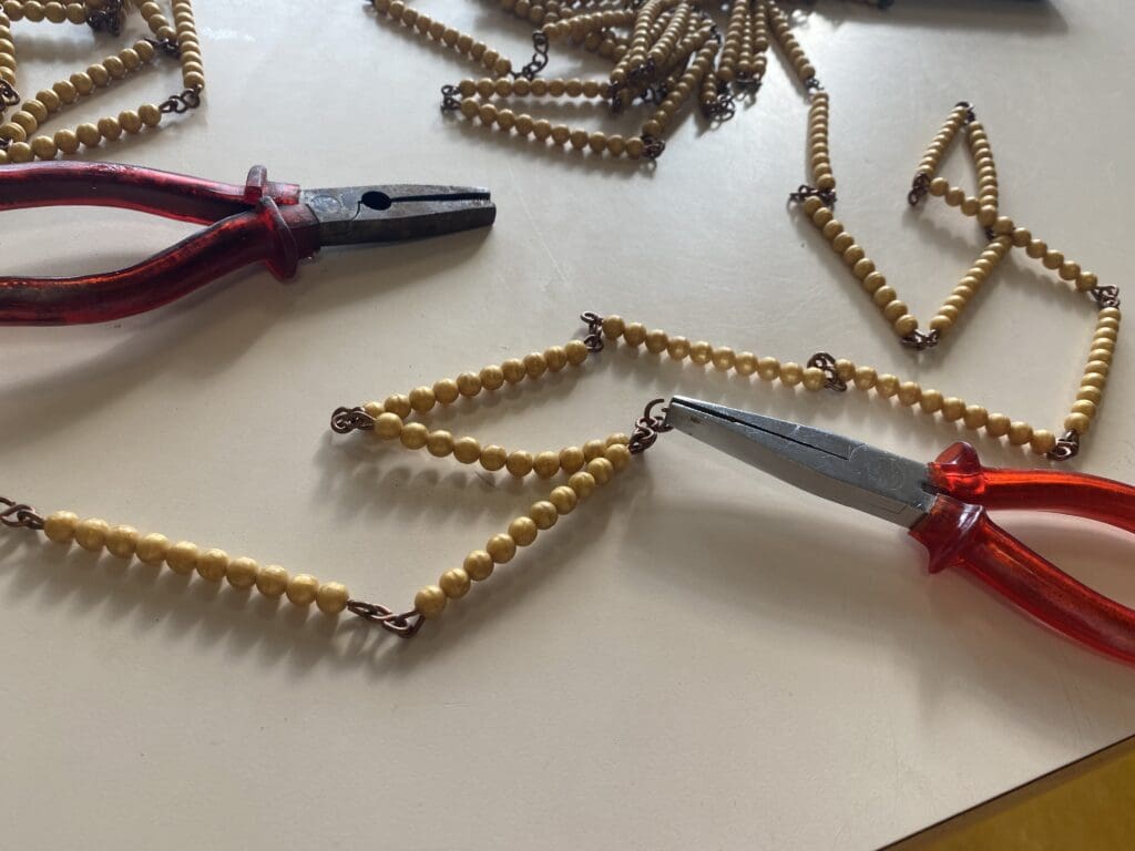 Maandag (14 maart). Een gezellige dag op school. Ik had een fijn overleg met collega’s en na schooltijd repareerde ik een ketting waarmee de kinderen rekenen. Deze lag in drie delen. Niet helemaal de bedoeling. Het is net als kettingen maken, haha.