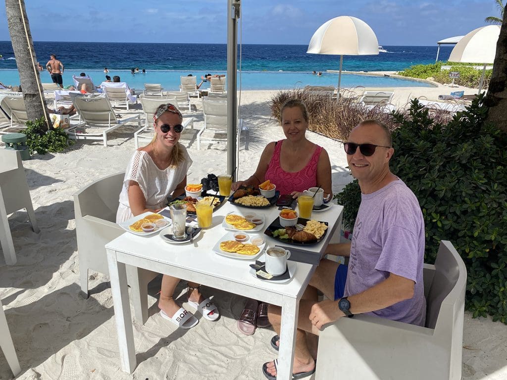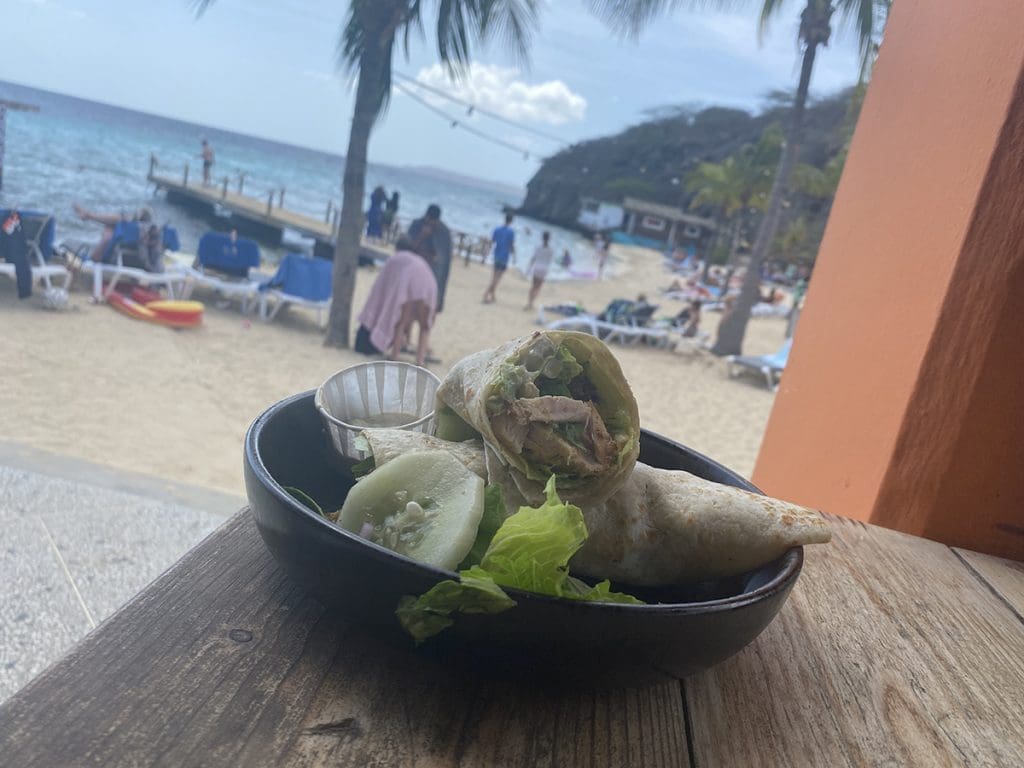We kwamen erachter dat er familie van mijn moederskant op het eiland was. We spraken af om samen bij de Jan Thiel baai te gaan eten.