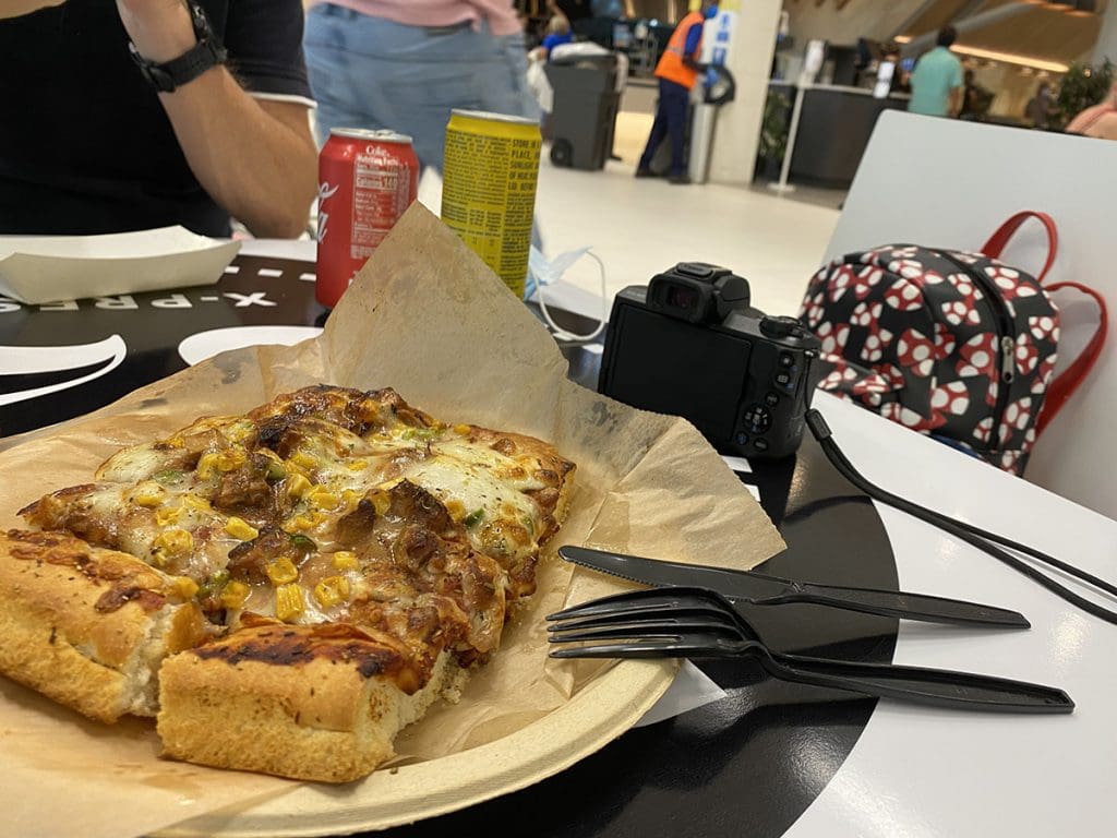 Even wat eten op het vliegveld voor we om 20:00 lokale tijd gaan vliegen.