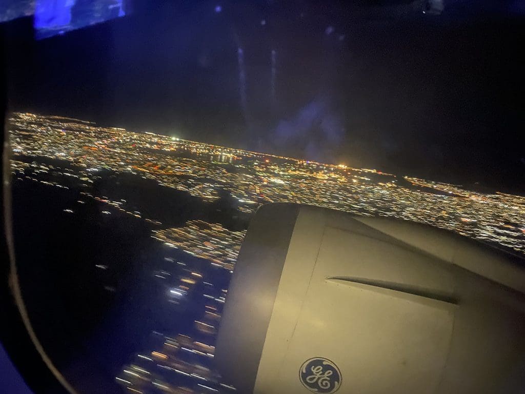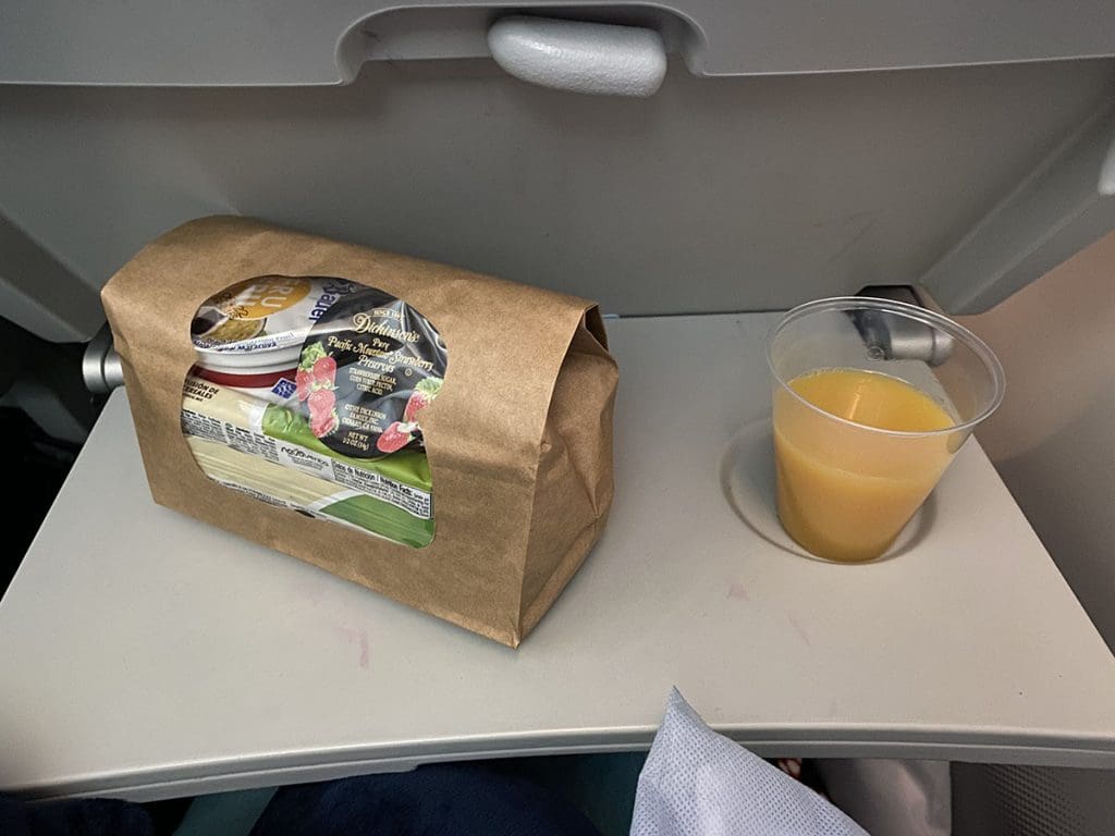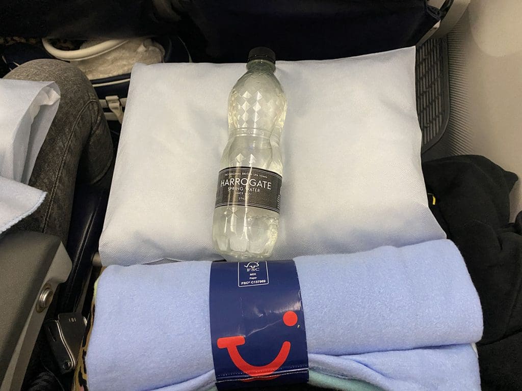 Het vliegpakket voor die avond. We vlogen ’s nachts en probeerden te slapen. Met name: probeerden….