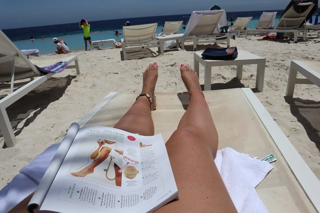 We zijn nu op een ander plekje op het strand gaan liggen. Ook erg fijn.