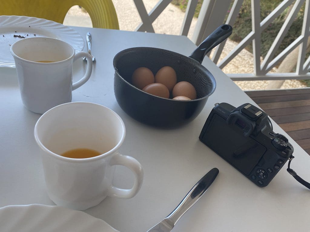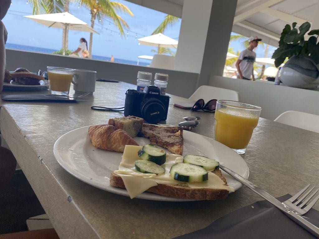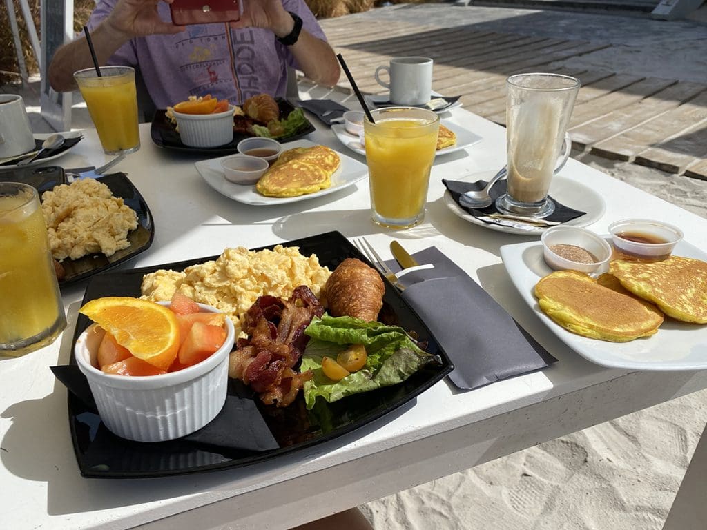 Zaterdag (14 augustus). Een heerlijk ontbijt op het strand. We gaan er weer van genieten.