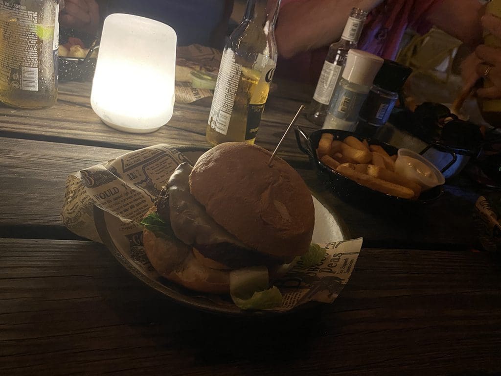 We waren wat later thuis en gingen snel douchen. Daarna weer naar Jan Thiel: op zoek naar een plekje om te eten. We vonden een tentje waar je zelf je hamburger kunt samenstellen. Lekker!