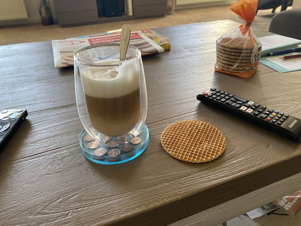 Woensdag (2 maart). Ik ging naar mijn moeder toe. Een dagje samen naar de Ikea, lunchen en iets met de Epoxy doen. Maar eerst: koffie.