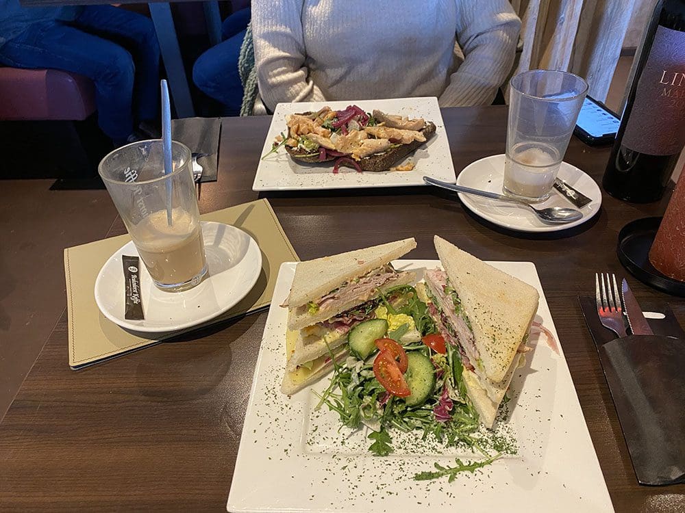 Een super lekkere club sandwich. Ik zit voorlopig wel vol.