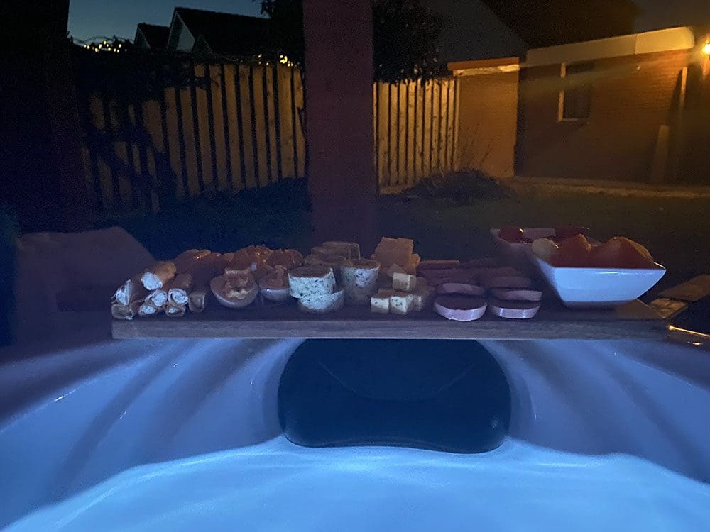 Eenmaal thuis had Thijs een verrassing voor mij. Een heerlijke borrelplank in het bubbelbad. We hebben heerlijk lang gechillt in het bubbelbad samen.