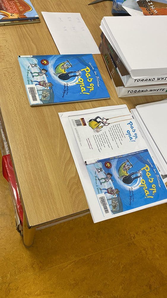 Dinsdag (7 februari). Ik werkte een ochtend op school en was vooral bezig met dingen voorbereiden. Boekjes kopiëren en dingen klaarleggen.