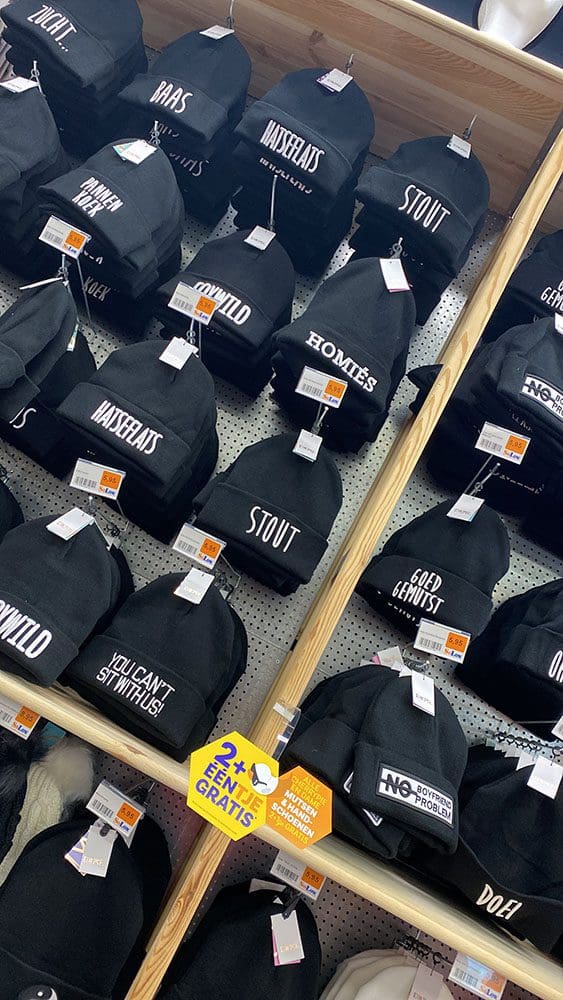 Daarna ging ik naar Doetinchem om mijn bril te laten bijstellen. Hij drukte wat achter mijn oren. Verder haalde ik nog wat andere dingen onder andere voor carnaval. Bij de So Low hebben ze veel leuke dingen. Ik moest ook lachen om deze mutsen.