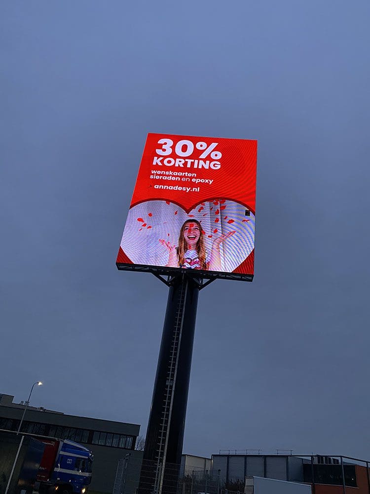 Ik maakte nog armbandjes voor bij mijn carnavalsoutfit. Daarna kwamen mijn ouders bij mij. Thijs had als verrassing een advertentie gemaakt voor op een ledbord langs de A12 bij Duiven.