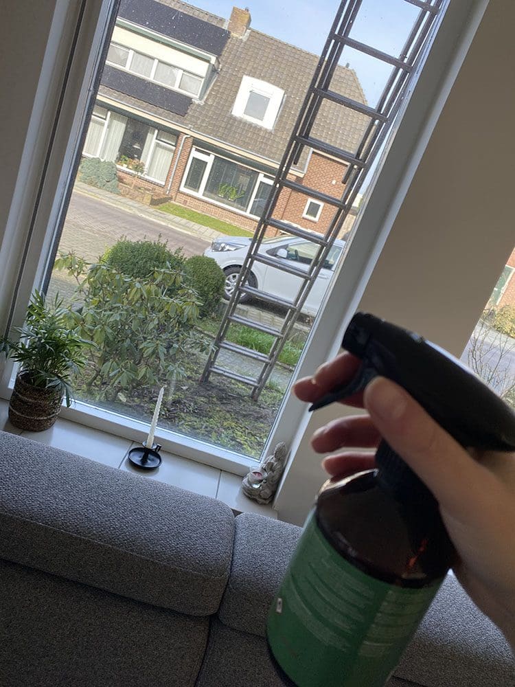 Vrijdag (10 februari). Na een ochtend werken op school ging ik thuis schoonmaken. In de ochtend is ons rolluik gemaakt. Vandaar die ladder voor het raam.
