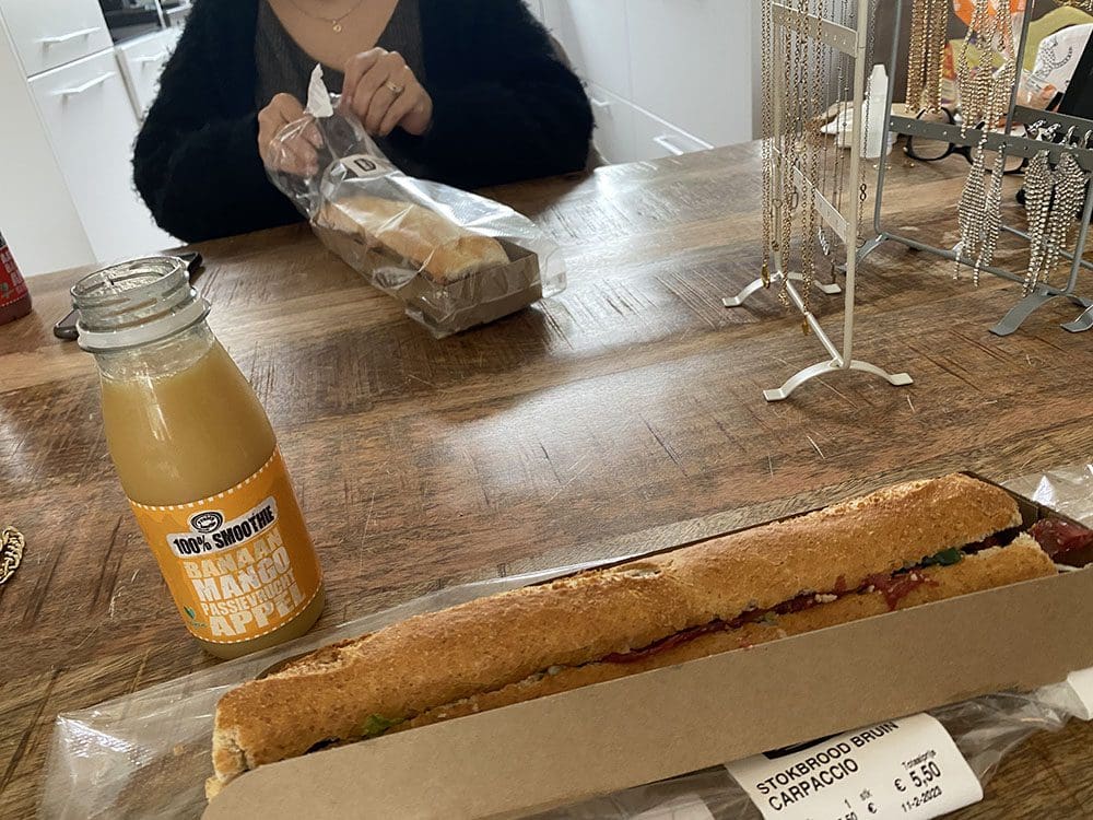 Van al dat foto’s maken, krijg je trek. Ik haalde bij de Jumbo lekkere broodjes.