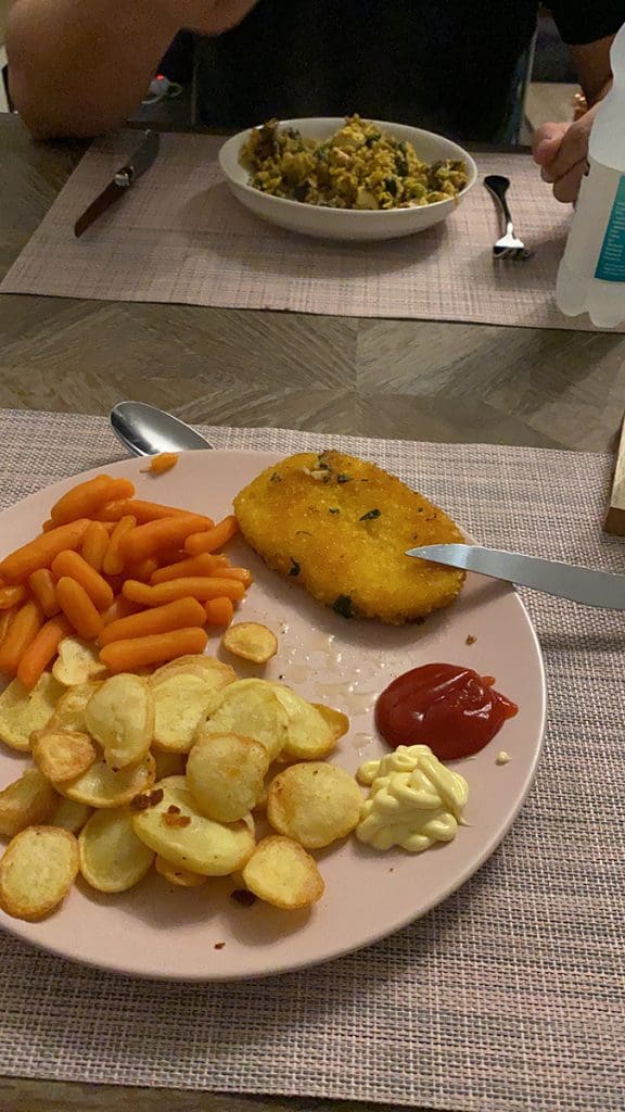 Thijs had als avondeten een zelf bedachte aardappel ovenschotel gemaakt. Lekker!