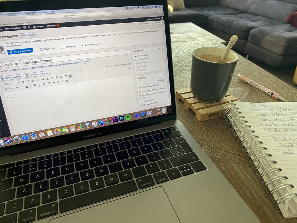 Dinsdag (10 november). Een leuke ochtend op school. Daarna thuis met een bak koffie achter de laptop: bloggen.