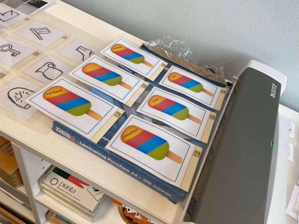 Woensdag (13 mei). De ochtend en een stuk van de middag ging ik weer naar mijn school in Doesburg. Op woensdag zijn daar geen kinderen, zodat groep 8 de ruimte heeft om de musical te oefenen en leerkrachten dingen kunnen voorbereiden. Samen met twee andere collega’s was ik aan het kopiëren , lamineren en knippen.