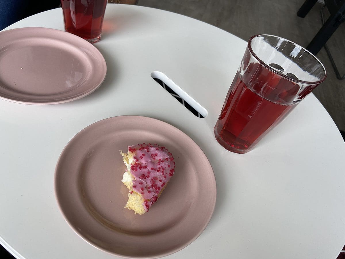 Daarna kwamen Ellen en Dennis langs. Dennis heeft wat geholpen met de deurklinken en ik heb gezellig gekletst met Ellen. Met een lekkere donut erbij.