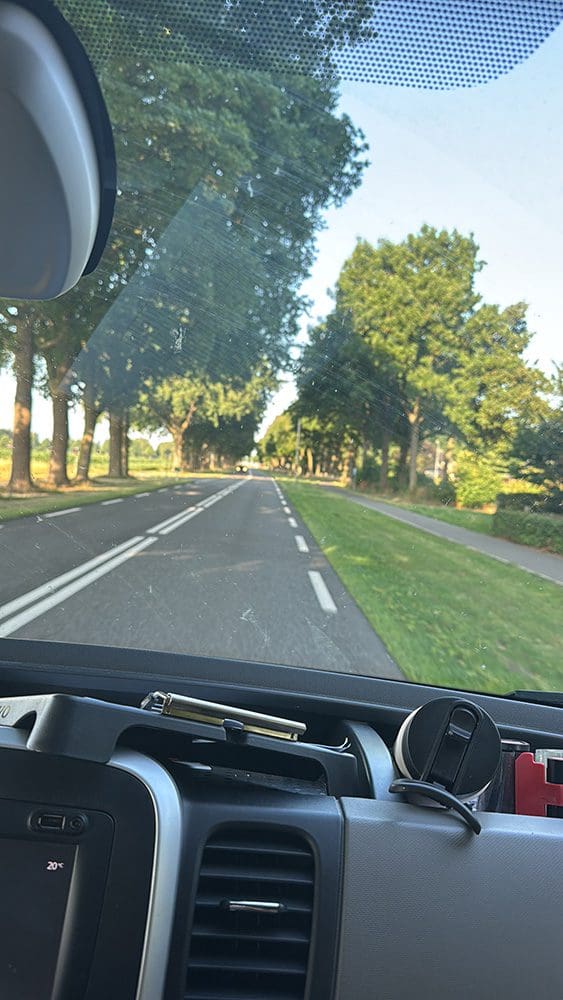 Thijs had een nieuwe telefoon voor mijn neef gefixt en die gaan we brengen. Op naar Voorhout. Helaas wel file…