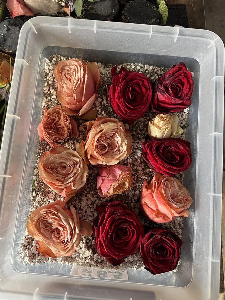 Daarna reed ik naar mijn moeder om een nieuw trouwboeket te brengen om te drogen. Kijk hoe mooi die rozen zijn?!