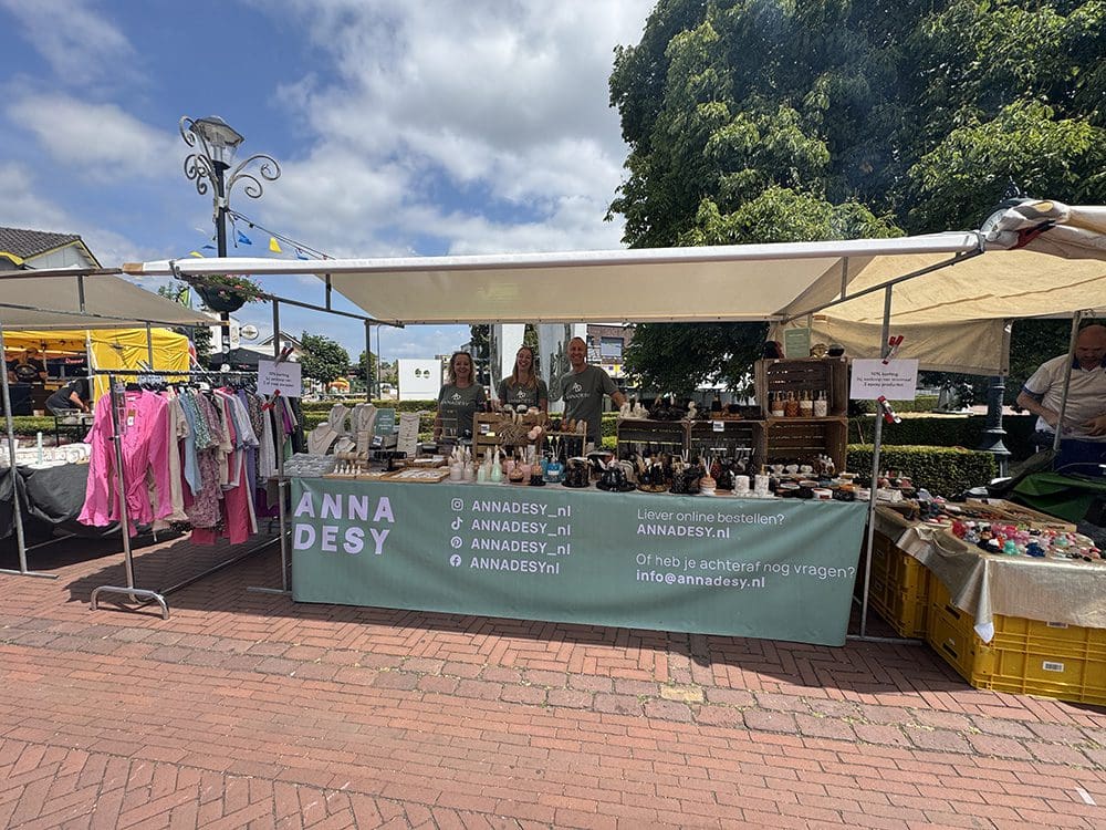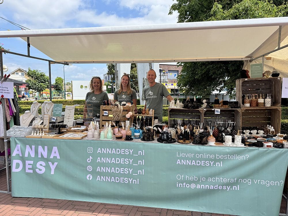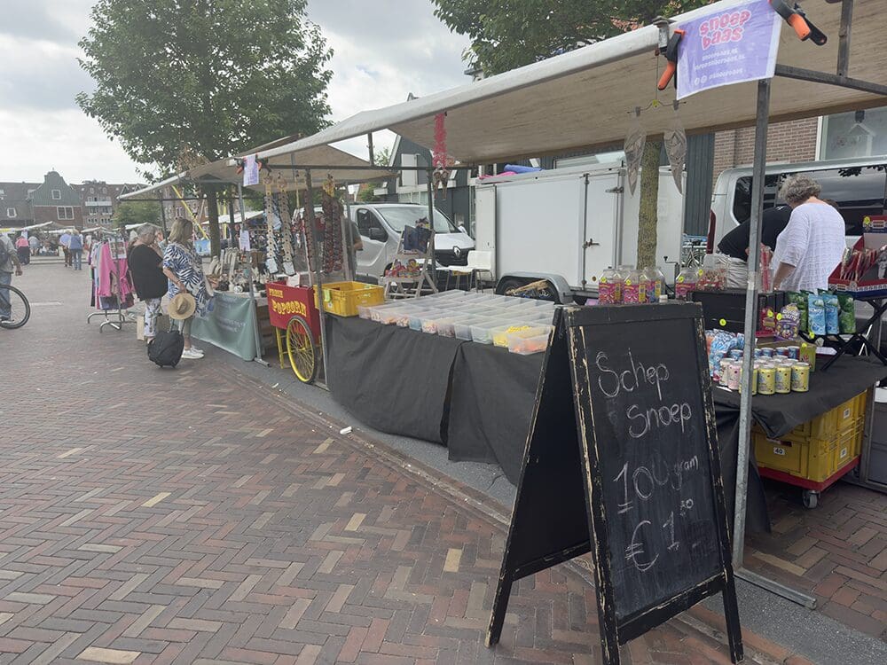 Remco en Danielle waren er ook. Met z’n drieën staan we weer gezellige naast elkaar op de markt.