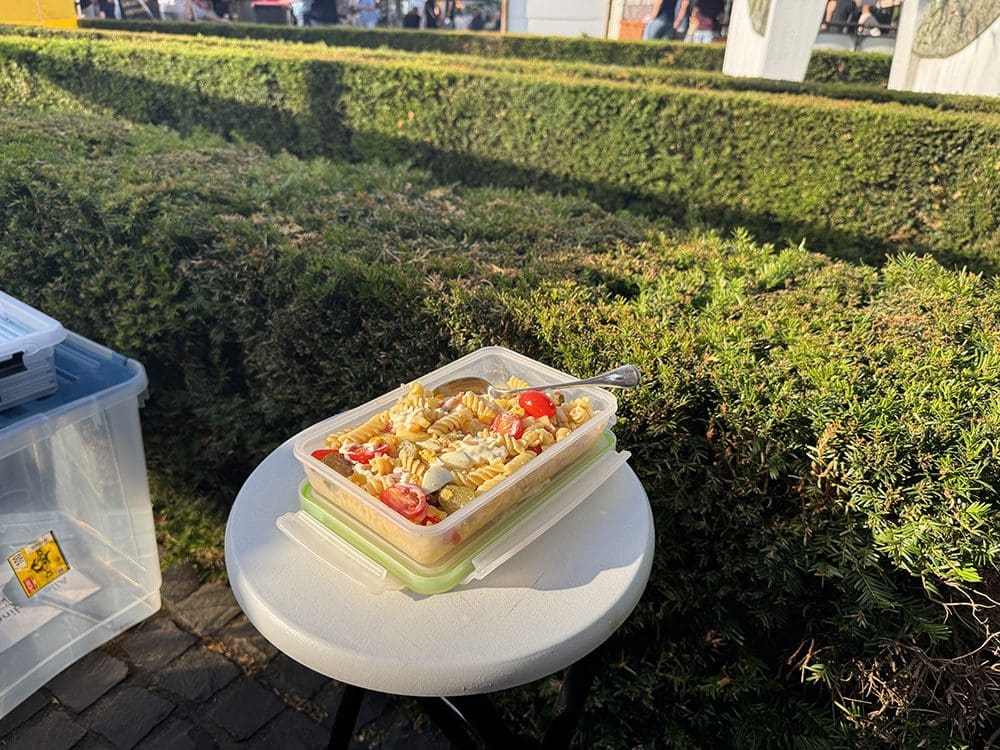 En daar is dan een lekkere pasta van Thijs. Zo lief. In de avond werd het wel rustiger. Rond half negen zijn we al gaan opruimen in plaats van negen uur. Er waren al veel kramen leeg waardoor mensen dachten dat de braderie al afgelopen was. Dat was dus helemaal niet zo. Echt jammer.