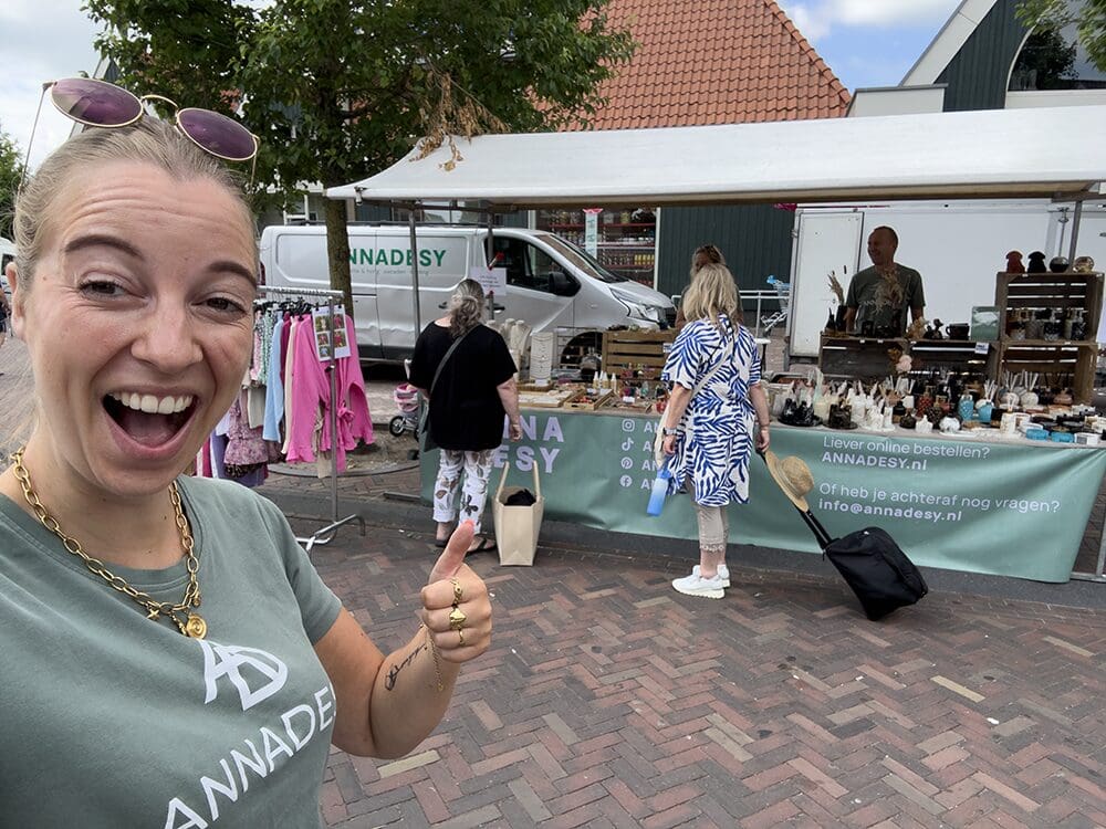 Het was el echt een gezellige en leuke markt. Leuk opgezet. En ik was even een rondje maken… belt mama (meestal is dat omdat een klant wilt pinnen) dus dat dacht ik. Nee hoor: ik moest links kijken, kwam Jan Smit aanlopen, haha. Geniaal.