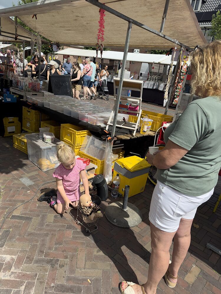 En om 13:00 stonden we klaar voor de markt. Kim stond gezellig naast ons.