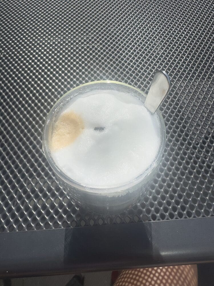 Thijs ging eten voor ons maken en brengen. Dit duurde even en ik had het zo warm. Een lekkere ijskoffie gaat er wel in.
