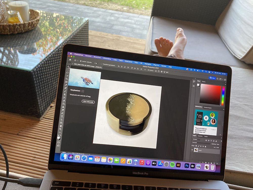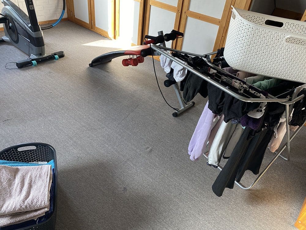 Foto’s bewerken in de zon is lastig dus dat doe ik onder de overkapping. Dat gaat beter. Na het werken ben ik gaan sporten op zolder.