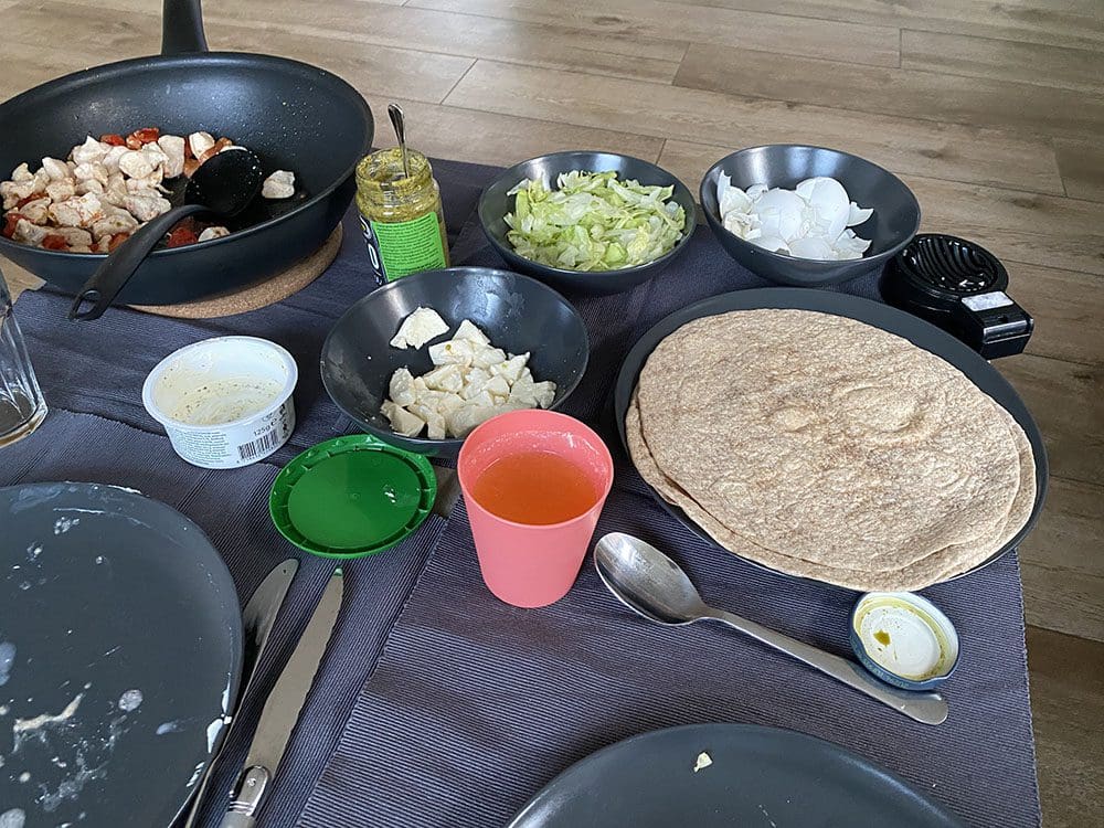 En daarna samen met Thijs het eten gemaakt: wraps.