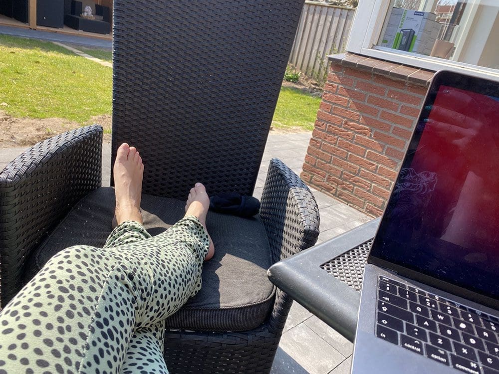 Het was lekker in het zonnetje. In een t-shirtje kon ik prima buiten zitten in de zon. Ik werkte wat aan de blog en voor Heppy.