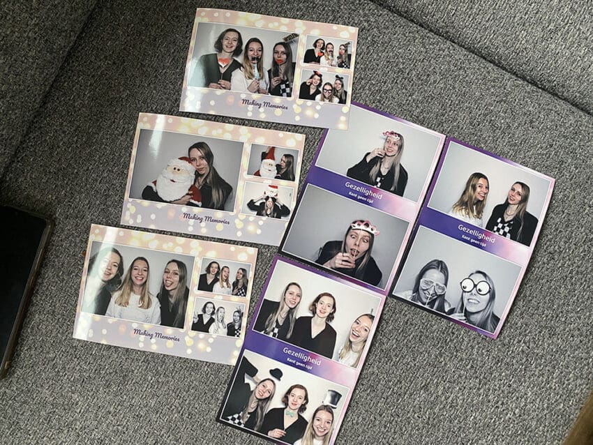 Zijn alle foto’s klaar? Wanneer je de printer hebt aangesloten, drukt de printer de foto gelijk af. Heb je de printer niet aangesloten? Dan slaat de Photobooth de foto op in de galerij. Hier kun je via de Photobooth altijd naar terug en alsnog de foto uitprinten. Ideaal!