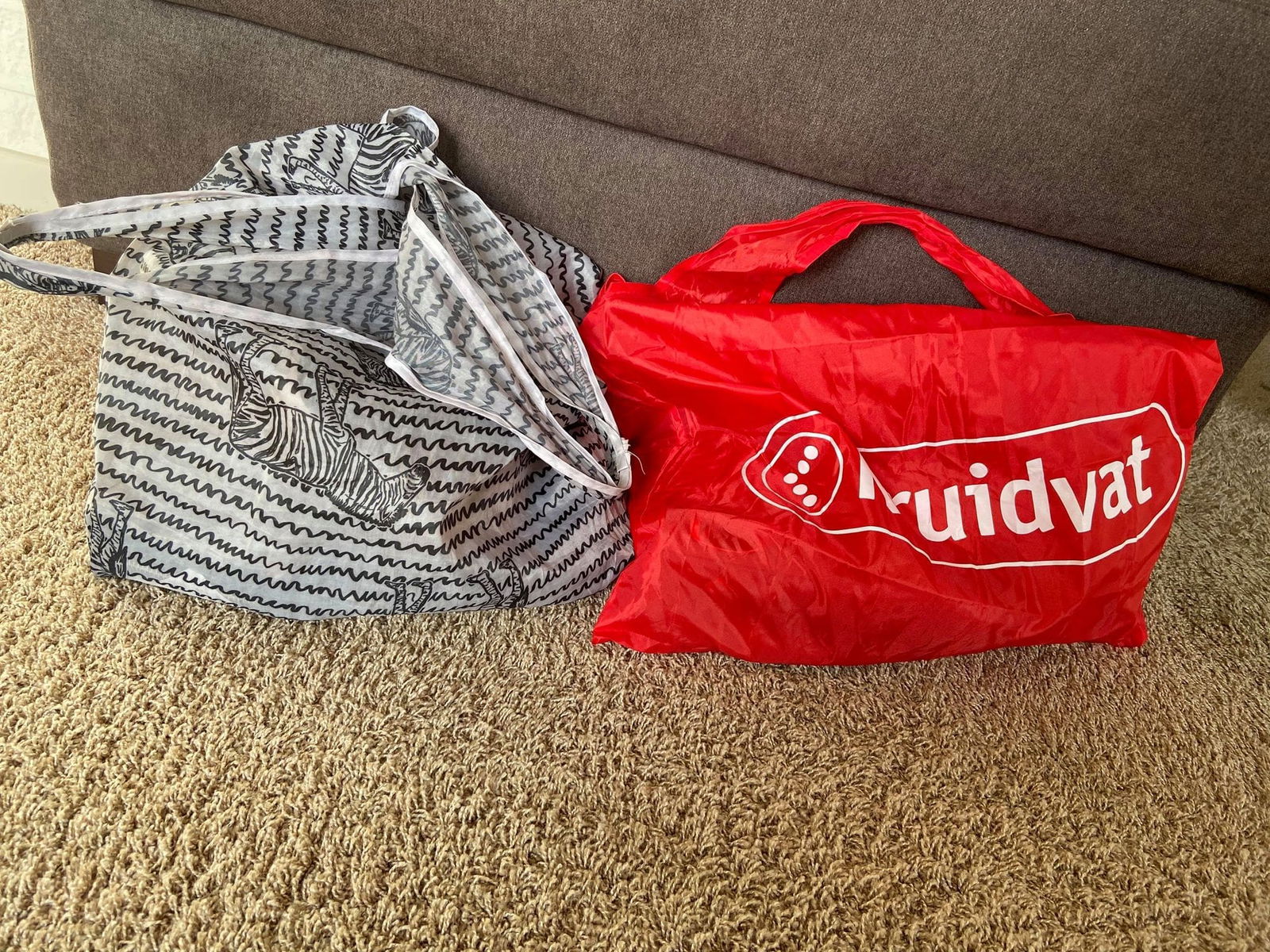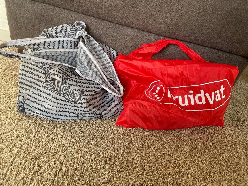 Tegenwoordig heeft bijna iedereen wel een eigen tasje mee volgens mij. Ik heb ook van die kleine opvouwbare tasjes mee. Het is beter voor het milieu en ik betaal liever niet voor een tasje ( Papieren tassen neem ik trouwens wel aan als ze die in een winkel hebben, daar hoef je nooit voor te betalen). Dan denk ik liever aan het milieu en neem mijn eigen tasje mee. Ik heb er eentje van het Kruidvat en eentje met een gezellig zebra printje.