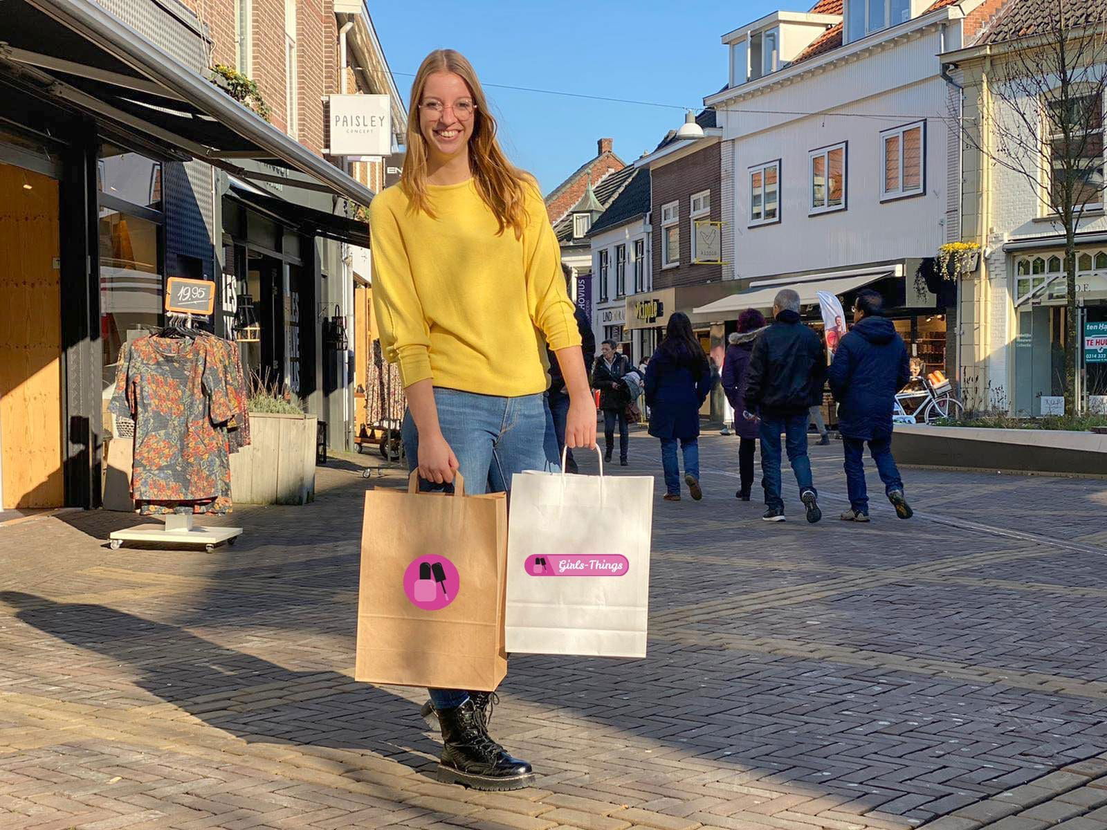 We zitten alleen nu even krap bij tas, haha. De bedrukte tassen zijn op en we krijgen binnenkort nieuwe. We geven nu gewoon witte papieren tassen mee, maar gelukkig hebben veel klanten ook altijd zelf een tasje mee.