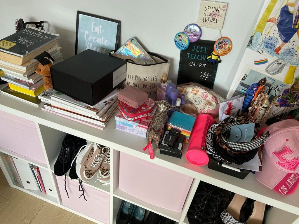 En mijn kast in de kamer met heel veel spulletjes erop. Die mag ik ook wel eens opruimen en dingen weg doen die ik niet meer nodig heb.