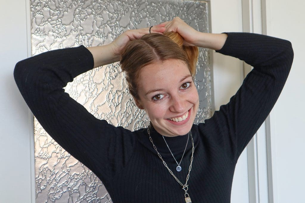 Mijn haar heb ik nooit ook echt vaak vast. Nu het wat langer is, kan ik daar ook dingen meer uitproberen. Een staart of knotje. Eens prutsen wat leuk kan staan.