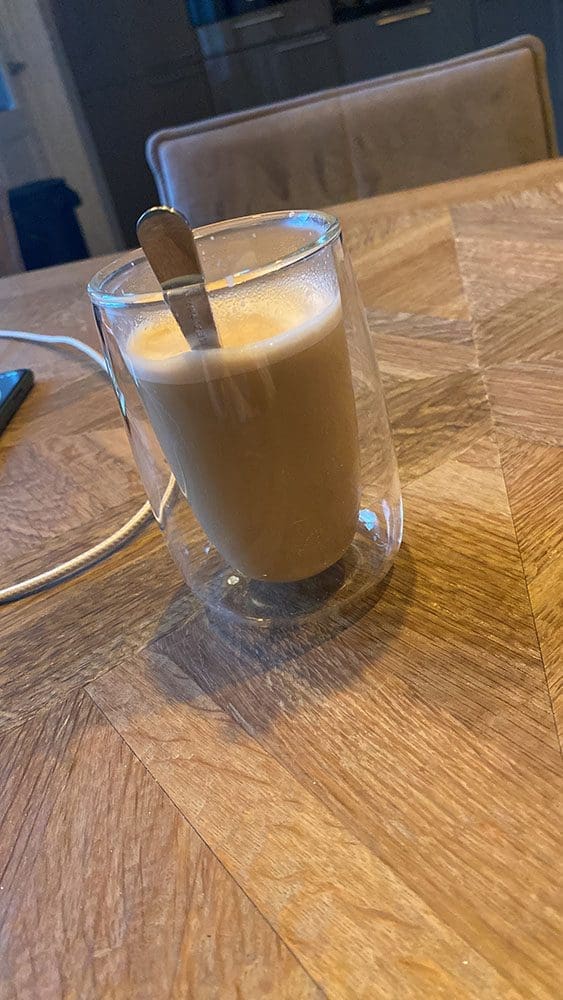 Zaterdag (31 december). Blegh wat een regen. De laatste lekkere latte van 2022. Verder zat ik wat achter de computer en bezig voor Insta.